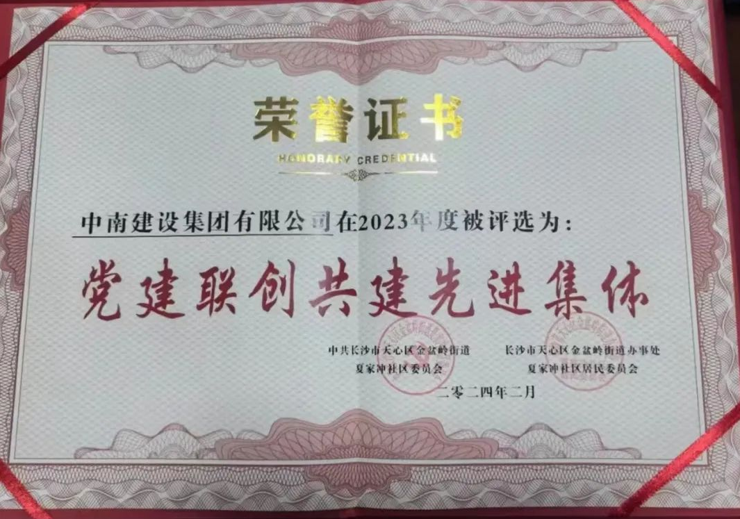 2月5日,天心區(qū)金盆嶺街道夏家沖社區(qū)2023年度黨建聯(lián)創(chuàng)共建活動(dòng)評(píng)選結(jié)果揭曉,中南建設(shè)集團(tuán)有限公司榮獲“黨建聯(lián)創(chuàng)共建先進(jìn)集體”,公司副總經(jīng)理許可榮獲“社區(qū)建設(shè)先進(jìn)個(gè)人”。該榮譽(yù)是公司積極推行“企業(yè)+社區(qū)”黨建聯(lián)創(chuàng)共建共享的成果體現(xiàn),也是對(duì)雙方互動(dòng)合作成效的高度認(rèn)可和充分肯定。