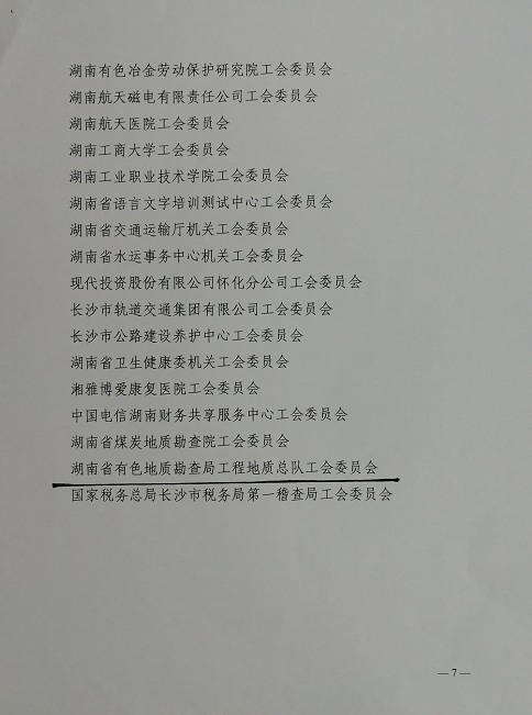 日前,由湖南省總工會組織開展的模范職工之家評選結(jié)果揭曉,湖南省有色地質(zhì)勘查局工程地質(zhì)總隊(duì)工會委員會榮獲“湖南省模范職工之家”稱號。這是繼2013年獲評長沙市“模范職工之家”之后,我隊(duì)工會獲取的一項(xiàng)更高殊榮。