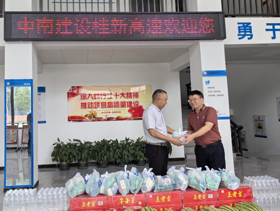 慰問(wèn)現(xiàn)場(chǎng),袁安群一行將精心準(zhǔn)備的防暑降溫物資親手送到一線建設(shè)者手中,叮囑大家務(wù)必做好高溫防護(hù),科學(xué)安排作息,合理錯(cuò)峰作業(yè),確保身心健康。這份飽含溫情的關(guān)懷,極大鼓舞了項(xiàng)目團(tuán)隊(duì)的士氣,凝聚了項(xiàng)目攻堅(jiān)合力。