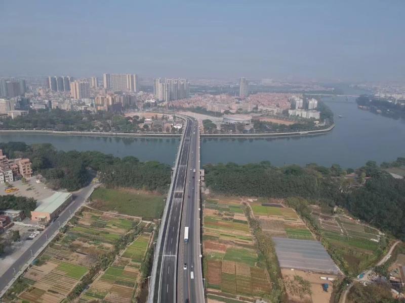 由我公司承建的東莞市道滘大橋重建工程于2020年12月31日正式通車。該項(xiàng)目起點(diǎn)位于道滘鎮(zhèn)道厚路蔡白村段,跨越東莞水道后,終于道厚路與橋東大街的平交口。主線全長(zhǎng)1.13千米,其中橋梁長(zhǎng)度809.04米。主橋72.08+130+72.08m預(yù)應(yīng)力混凝土連續(xù)箱梁,最大跨徑130m,采用懸臂澆筑法施工,橋?qū)?9米,設(shè)計(jì)車速60千米/小時(shí),按一級(jí)公路標(biāo)準(zhǔn)設(shè)計(jì)建設(shè)。重建道滘大橋有效連接道滘鎮(zhèn)與厚街鎮(zhèn)、萬(wàn)江以及市中心,交通承載能力大幅提升,極大地緩解了水鄉(xiāng)片區(qū)往來(lái)市區(qū)的交通壓力,促進(jìn)了東莞市城鄉(xiāng)均衡發(fā)展。