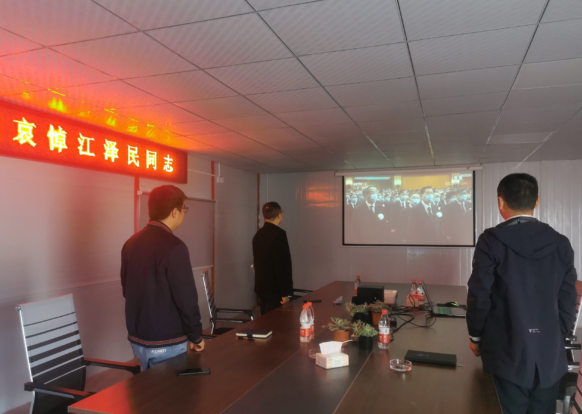 司屬各單位在其駐地組織收看大會實況,沉痛哀悼深切緬懷江澤民同志。