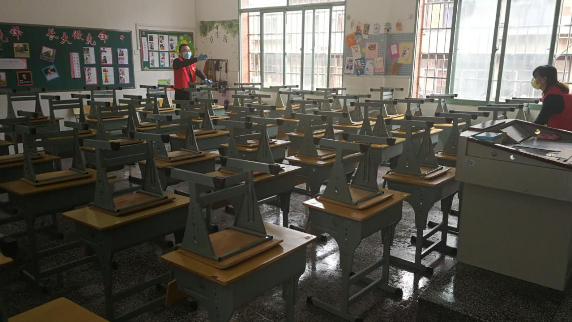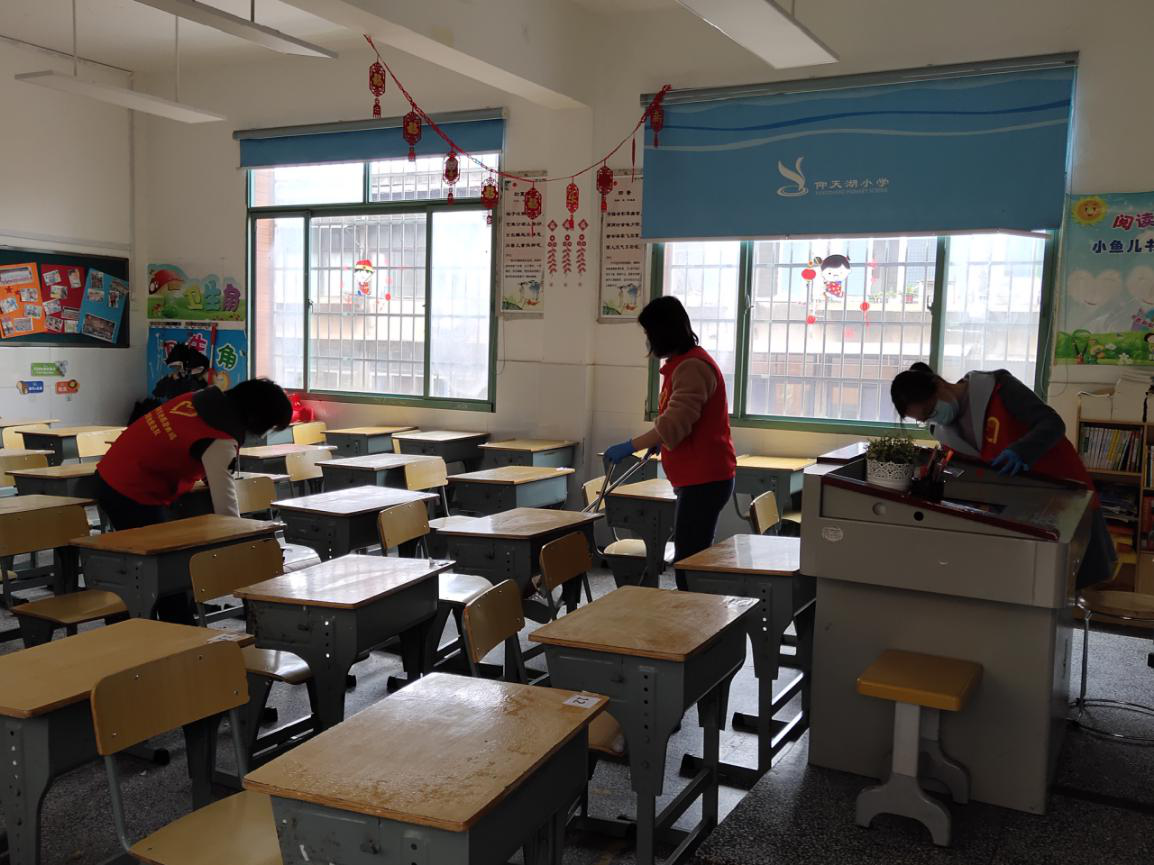 本次活動(dòng),我隊(duì)30多名志愿者積極主動(dòng)參與,分組對(duì)仰天湖小學(xué)校園內(nèi)的11間教室、樓道、走廊等公共區(qū)域進(jìn)行了全方位、無(wú)死角的清理打掃和消毒防控?;顒?dòng)中,志愿者們紛紛卷起袖子、拿起拖把和毛巾沖到最臟最亂的角落開(kāi)展衛(wèi)生整治,充分展現(xiàn)了地質(zhì)青年“不怕臟、不怕累”的精神面貌。在大家的共同努力下,校園衛(wèi)生清潔徹底、教室桌椅擺放整齊,整個(gè)校園煥然一新,得到了校方人員的高度好評(píng)?;顒?dòng)結(jié)束后,志愿者們臉上露出了開(kāi)心的笑容,紛紛表示將繼續(xù)為打贏疫情防控的人民戰(zhàn)、總體戰(zhàn)、阻擊戰(zhàn)凝聚精神力量,以新時(shí)代新風(fēng)尚引領(lǐng)我隊(duì)精神文明建設(shè)向更高層次邁進(jìn)。