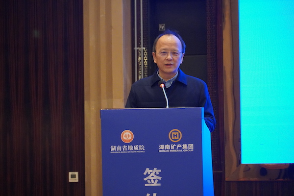 談文勝指出,地質與礦業(yè)相互依存、共生共榮,此次簽訂的三個協(xié)議是雙方優(yōu)勢互補、互利共贏的重要舉措。通過優(yōu)勢資產和優(yōu)質礦權的劃轉及雙方的緊密合作,將極大整合資源,實現(xiàn)戰(zhàn)略礦產的增儲上產,并將釋放協(xié)同效能,共同推動湖南礦業(yè)高質量發(fā)展。對于深化雙方合作,他提出三點倡議:一是把握機遇求共進,利用各自優(yōu)勢,深化合作,服務地方經濟社會發(fā)展;二是緊密聯(lián)動求共融,建立有效的溝通聯(lián)動機制,確保資源信息共享,項目需求對接;三是守正創(chuàng)新求共贏,持續(xù)推進合作創(chuàng)新,為打造湖南礦業(yè)集群提供強勁支撐。