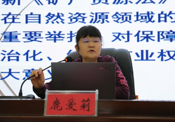 鹿愛(ài)莉圍繞新法頒布實(shí)施的重大意義、新法的精神實(shí)質(zhì)和重大制度、新法需要法規(guī)和規(guī)章規(guī)范性文件細(xì)化落實(shí)的制度等方面作了系統(tǒng)闡述,對(duì)新法進(jìn)行了全面深入的解讀。講座內(nèi)容豐富、條理清晰,既有鮮明的理論指導(dǎo)性,又有很強(qiáng)的現(xiàn)實(shí)針對(duì)性。特別是對(duì)立法背景和意義闡釋深刻,對(duì)新舊法條對(duì)比分析透徹,對(duì)重點(diǎn)政策問(wèn)題解讀到位,讓黨員干部對(duì)新《礦產(chǎn)資源法》有了更加直觀、準(zhǔn)確、深刻的理解和認(rèn)識(shí)。