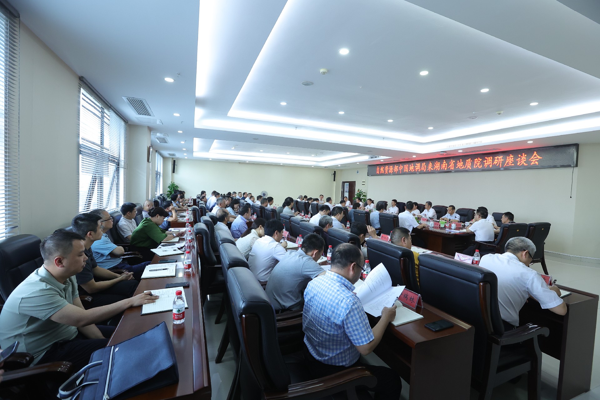 與會人員圍繞湖南資源基地建設(shè)、找礦人才隊伍、基礎(chǔ)地質(zhì)研究、聯(lián)合科技攻關(guān)、境外地質(zhì)工作、數(shù)字地質(zhì)建設(shè)等有關(guān)工作進(jìn)行了座談交流。
