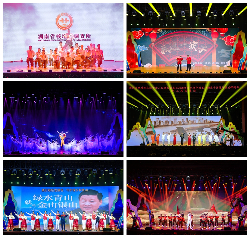文藝展演以“光榮屬于新時代地質筑夢人”為主題,分為“青山不墨千秋畫”“乘風破浪會有時”“看似尋常最奇崛”“而今邁步從頭越”四個篇章。院機關、院屬15家事業(yè)單位、院管企業(yè)演出人員悉數(shù)登場,將歌舞、相聲、話劇、朗誦等多種藝術形式匯聚成19個節(jié)目,共同彰顯了地勘單位職工的精神風貌和愛國情懷?!兜刭|繪山河》《地質光榮 奮斗有我》《羅布泊的回響》《礦世之約》《以迅應汛》《探銻報國的現(xiàn)代傳奇》情景重現(xiàn),一遍遍帶觀眾身臨其境地感受了湖南地質人不畏艱險的意志品質;《紅旗頌》《我和我的祖國 勘探隊員之歌》《守護》《未來已來》《飛天·奮進者之歌》《測繪之光·智繪未來》美輪美奐,一場場視覺盛宴呈現(xiàn)在觀眾眼前;《親親常德待客來》《“筑”福祖國》《我這一家子》《核的力量》《地質湘軍群英繪》《山河圖·踏夢行》《沁園春·雪》別具一格,一次次點燃了現(xiàn)場觀眾的似火熱情。最終,經(jīng)過現(xiàn)場與場外雙通道的投票,核地質所榮獲“最佳風采獎”,地災所、地信所、物化所榮獲“最佳人氣獎”,空間所、水環(huán)所、資源所、核應用中心、院機關榮獲“最佳創(chuàng)意獎”,測試中心、礦調(diào)所、生態(tài)所、工礦所、中南建設公司、地調(diào)所、城調(diào)所、遙感所榮獲“同心協(xié)作獎”。