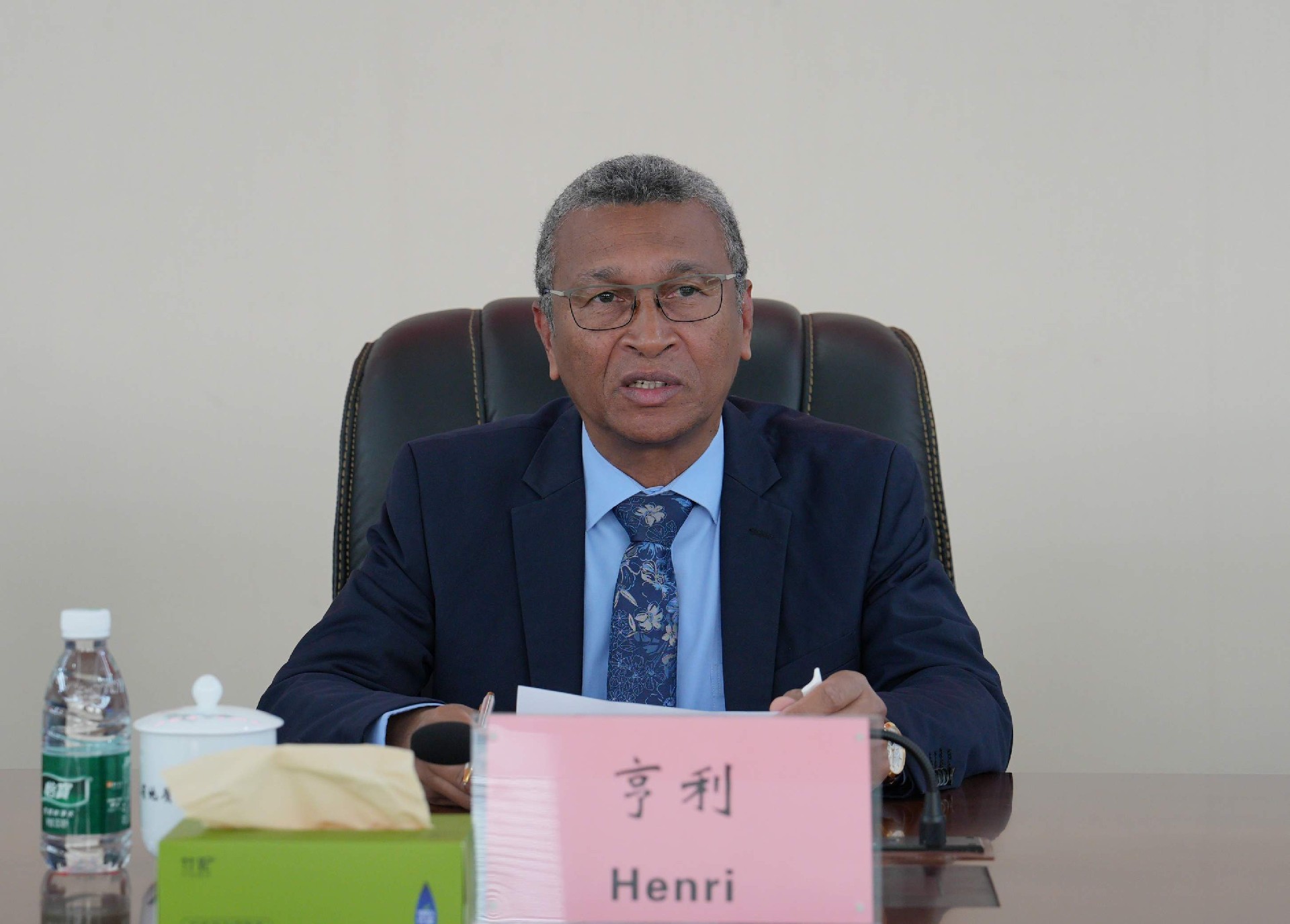 亨利非常感謝湖南省地質(zhì)院對馬達加斯加礦業(yè)發(fā)展的重視、支持和關(guān)心,介紹了馬達加斯加礦產(chǎn)資源稟賦、礦業(yè)發(fā)展規(guī)劃以及當(dāng)前的投資環(huán)境、政策優(yōu)勢等,表達了與湖南省地質(zhì)院加強合作的殷切期望。他指出,馬達加斯加擁有豐富的鐵、銅、稀土等礦產(chǎn)資源,開發(fā)潛力巨大,因地質(zhì)工作起步晚導(dǎo)致開發(fā)程度較低,亟須專業(yè)力量的介入與推動。希望借助湖南省地質(zhì)院的技術(shù)優(yōu)勢,進一步推動馬達加斯加礦業(yè)的高效、可持續(xù)開發(fā)和利用,提升礦業(yè)產(chǎn)業(yè)的附加值和國際競爭力。他表示,馬達加斯加礦業(yè)部將通過完善基礎(chǔ)設(shè)施建設(shè)、推動改善交通條件,吸引更多有實力的企業(yè)投資開發(fā),提升在馬達加斯加的地質(zhì)平臺建設(shè)水平,形成長期穩(wěn)定的合作關(guān)系,共同推動在地質(zhì)礦產(chǎn)勘查、開發(fā)、利用等領(lǐng)域互利共贏,為中非友誼與合作增添新的光彩。